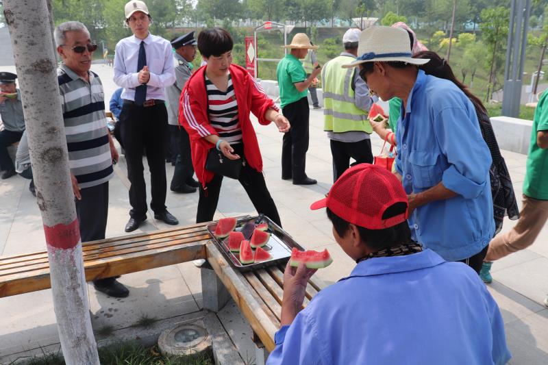 在公園的小廣場,慰問小組工作人員為員工切好西瓜,把西瓜、面包、白糖依次遞到員工手中,員工們親切的笑聲與慰問人員的互動形成了親情、溫情的交織,一片生動和諧的場面。雖然是一個個面包,一塊塊西瓜、一袋袋白糖,卻使員工永遠(yuǎn)記住了這美好時光。崔主席也親自為員工切起了西瓜,員工們品嘗著西瓜和面包,感受著領(lǐng)導(dǎo)的關(guān)懷,決心做好自己的本職工作,為晉城創(chuàng)建全國文明城市做出積極貢獻(xiàn)。