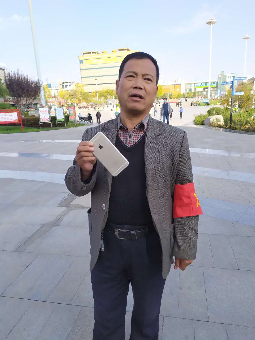 2020年10月31日下午2時(shí)30分左右,潔霸公司保安人員王紅廷師傅在人民廣場(chǎng)西門執(zhí)勤過(guò)程中,發(fā)現(xiàn)臺(tái)階上被人丟失的一部銀灰色的蘋果手機(jī),失主已經(jīng)離開(kāi),為防止手機(jī)被無(wú)關(guān)人員撿走,他趕忙將手機(jī)交至人民廣場(chǎng)辦公室進(jìn)行登記備案,并且想到失主一定焦急萬(wàn)分,隨后到西門等待失主回來(lái)找手機(jī),一個(gè)小時(shí)以后,一個(gè)面色匆匆的小姑娘來(lái)到了西門說(shuō)尋找丟失的手機(jī),王紅廷師傅把她領(lǐng)到廣場(chǎng)辦公室,讓她對(duì)自己丟失的手機(jī)進(jìn)行一個(gè)簡(jiǎn)單直觀的描述后,當(dāng)場(chǎng)和廣場(chǎng)辦公室人員一同確認(rèn)這個(gè)小姑娘就是手機(jī)的主人,面對(duì)丟而復(fù)得的手機(jī),小姑娘激動(dòng)地說(shuō),回來(lái)找只是僥幸心理,一直想的是手機(jī)應(yīng)該早被人拿走了,沒(méi)想到真的就找到了,無(wú)數(shù)次的真誠(chéng)地和王紅廷師傅說(shuō)著謝謝!王紅廷師傅用簡(jiǎn)樸的語(yǔ)言說(shuō),換了誰(shuí)都一樣,大家都會(huì)這么做!