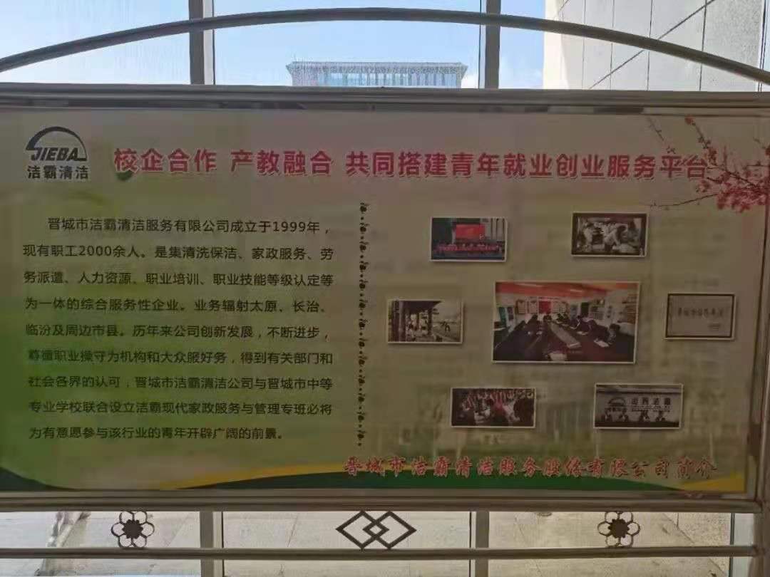 5月25日,是晉城市中等專業(yè)學(xué)校的“家長開放日”。活動當(dāng)天,晉城潔霸清潔服務(wù)股份有限公司攜手晉城市中等專業(yè)學(xué)校,共同開展了“校企合作,產(chǎn)教融合, 共同搭建青年就業(yè)創(chuàng)業(yè)服務(wù)平臺”主題活動。