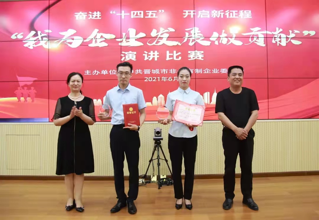 6月2日下午,晉城市非公企業(yè)黨委“奮進(jìn)十四五·開啟新征程 我為企業(yè)發(fā)展做貢獻(xiàn)”主題演講比賽決賽在市市場(chǎng)監(jiān)督管理局6樓視頻會(huì)議室成功舉行。我公司選手薛李琴在決賽中榮獲二等獎(jiǎng)。