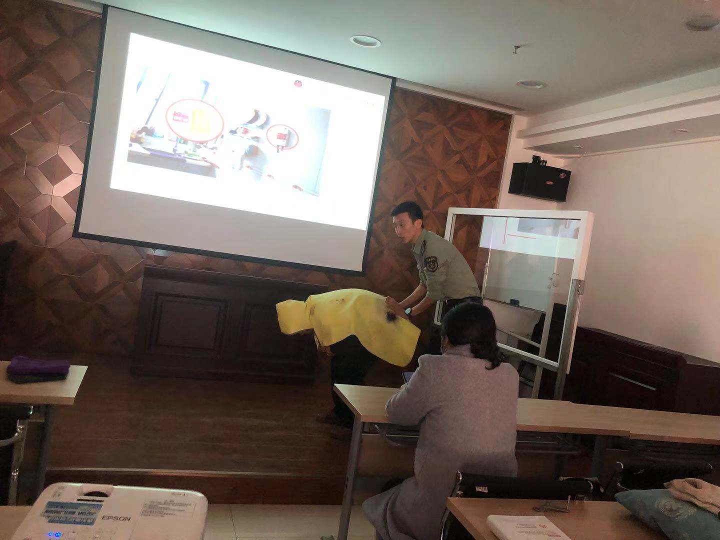 培訓(xùn)中,李偉教官還向大家介紹了一些生活中的防火小技巧,如:燃?xì)庵鹨皶r關(guān);油鍋著火時最好使用滅火器、滅火毯等,或使用冷油降溫、切碎蔬菜等澆滅;提倡大家要養(yǎng)成“人走電斷”的好習(xí)慣等。隨后,又向大家講解了各類火災(zāi)的自救方式,特別是讓每個員工重新認(rèn)識了一些預(yù)防火災(zāi)的新知識,尤其是家庭預(yù)防火災(zāi)4件寶(小型滅火器、逃生的繩索、手電筒、防煙面罩),讓大家對這些消防器材有了更深一步的了解。最后,消防宣傳員演示了如何正確使用滅火器。
