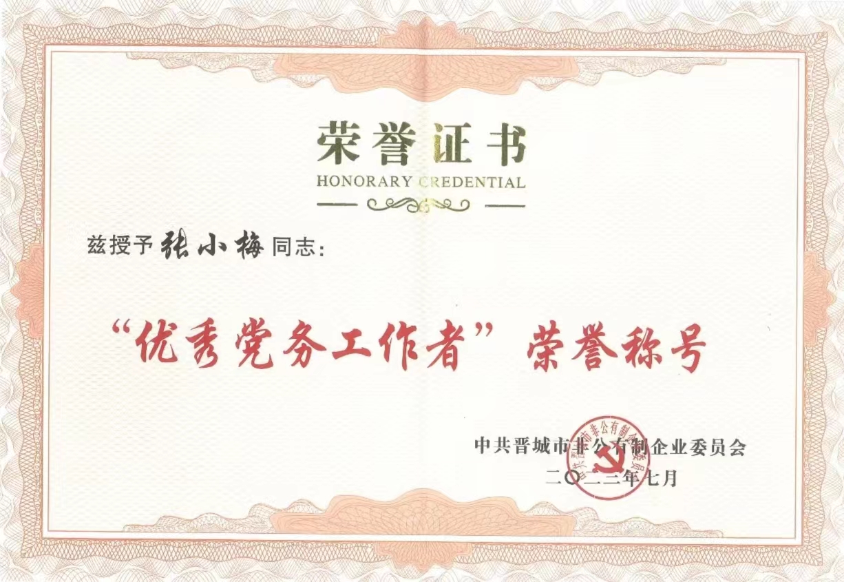 此次被市非公企業(yè)黨委授予“先進(jìn)基層黨組織”稱號(hào),是公司黨支部連續(xù)第五年獲得此項(xiàng)殊榮。近年來,公司黨支部堅(jiān)持黨建引領(lǐng),抓陣地,建機(jī)制,壯隊(duì)伍,提素質(zhì),設(shè)立黨員示范崗、示范區(qū),廣泛開展“戴黨徽、亮身份、樹形象”活動(dòng),持續(xù)推進(jìn)黨建與生產(chǎn)經(jīng)營(yíng)深度融合,真正賦能企業(yè)高質(zhì)量發(fā)展。公司先后榮膺省、市級(jí)授予的“守合同重信用單位”“巾幗創(chuàng)業(yè)基地”“家政服務(wù)先進(jìn)單位”“商貿(mào)流通工作先進(jìn)單位”“山西省‘四新’中小企業(yè)”“晉城市模范單位”等榮譽(yù)稱號(hào)。等殊榮,公司黨支部分別獲得“‘雙強(qiáng)六好’省級(jí)示范黨組織”“‘雙強(qiáng)六好’市級(jí)示范黨組織”晉城市基層黨組織規(guī)范化建設(shè)示范點(diǎn)”等榮譽(yù)稱號(hào)。