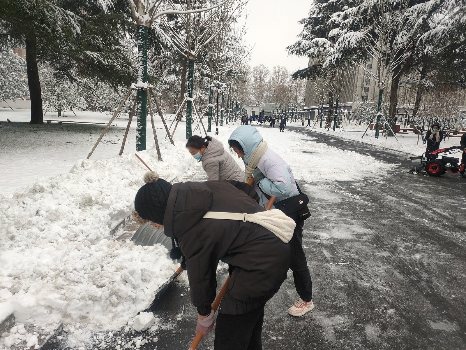 15日晚,晉城市潔霸清潔服務(wù)股份有限公司黨支部在支部群下發(fā)到市政府除雪通知。16日一大早,公司全體黨員和入黨積極分子以雪為令,聞雪而動(dòng),積極投身到市政府清掃積雪的活動(dòng)中。他們出動(dòng)除雪車進(jìn)行清雪除雪作業(yè),把厚厚的積雪推到了路邊,隨后,大家有的用除雪鏟推,有的拿鐵鍬鏟,分工明確,配合默契,同市直相關(guān)單位工作人員一起把市政府大院內(nèi)路面的積雪清掃干凈,營(yíng)造了干凈整潔的出行環(huán)境。