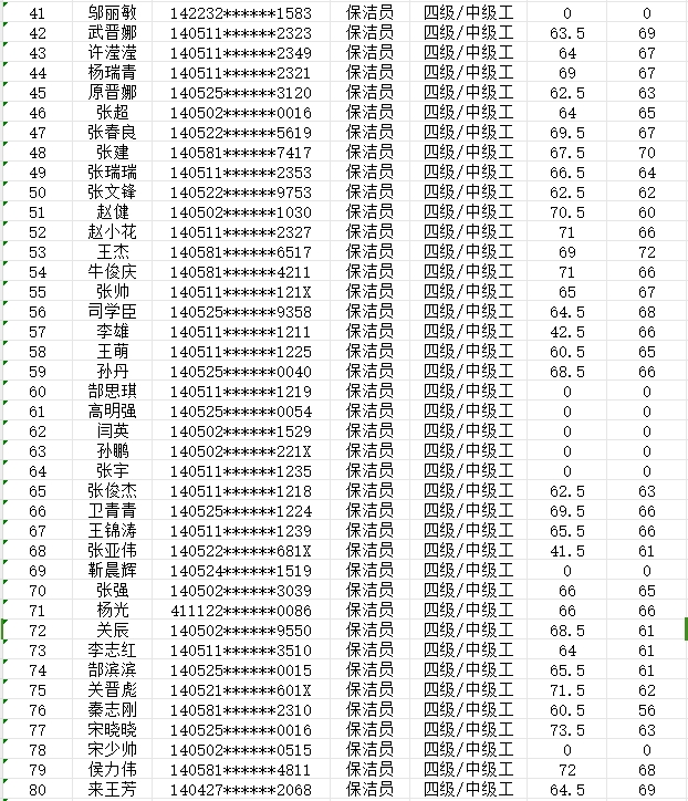 晉城市潔霸清潔服務(wù)股份有限公司職業(yè)技能等級認(rèn)定中心現(xiàn)將2024年2月3日認(rèn)定人員成績公示如下: