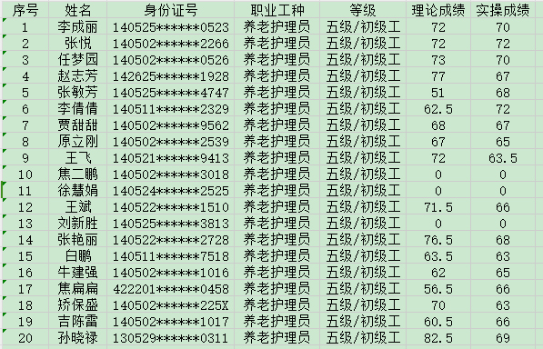 2024年8月25日第31批養(yǎng)老護理員初級認(rèn)定人員成績公示